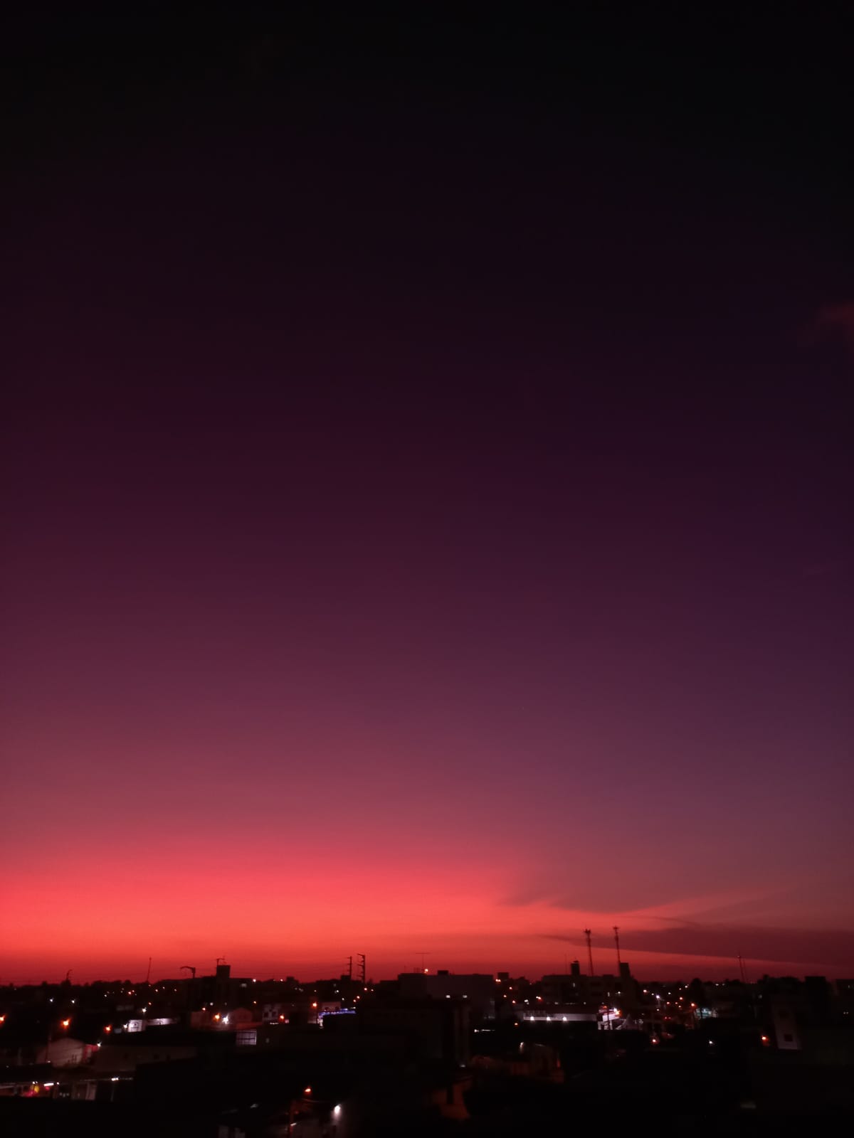 E como essas nuvens de cinzas são muito mais altas que as nuvens “normais” (as de vapor d’água), elas refletem a luz solar por mais tempo, porque, mesmo o Sol estando bem abaixo do nosso horizonte, ainda consegue iluminar as camadas mais altas da atmosfera.